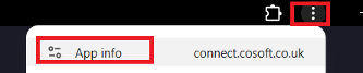 Click the "three dots" menu in the top right of the Connect App Title bar, and click on "connect.cosoft.co.uk" next to "App Info"..