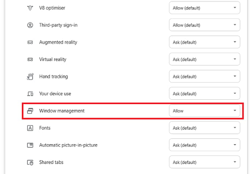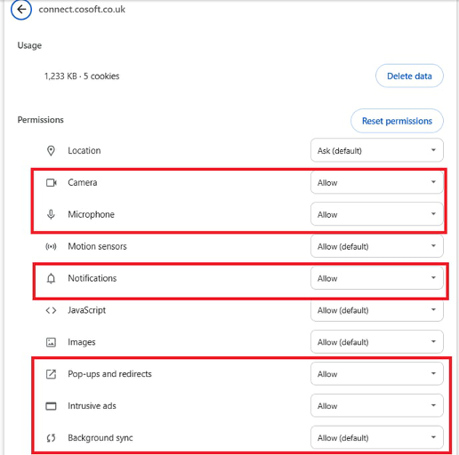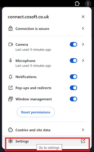 To navigate to the browser permissions for Connect in Edge, navigate to the Connect Login