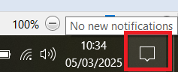 In Windows, click on the Notification Centre icon in the bottom right of the screen: