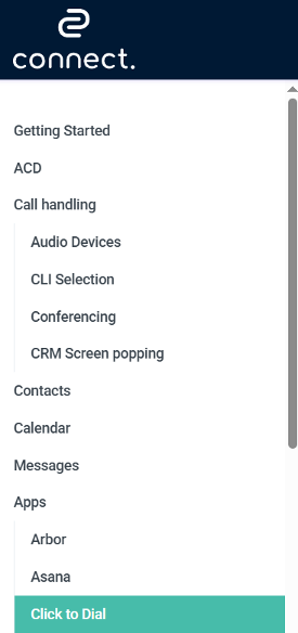 icon to open the online help. - Navigate to "Click to Dial", under Apps.