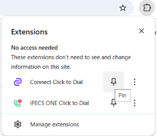 You can click on the drawing pin icon to display the Connect Extension in the Toolbar: