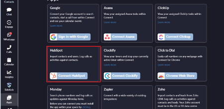 To enable click to dial from HubSpot you will need to return to the App page of Connect and download Chrome Click to Dial.