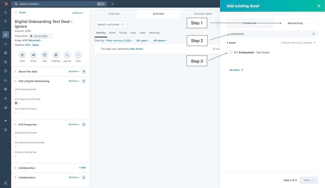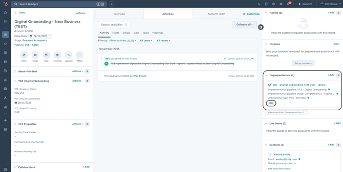 - This onboarding type, will not need to go through the Deal process, as the deal already exists within VCS (outside of HubSpot).